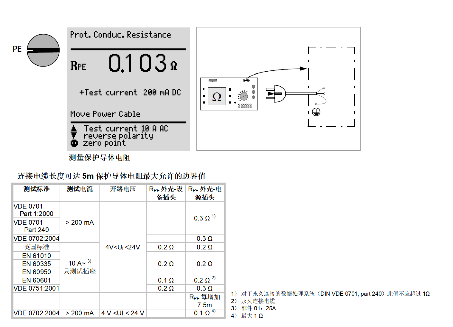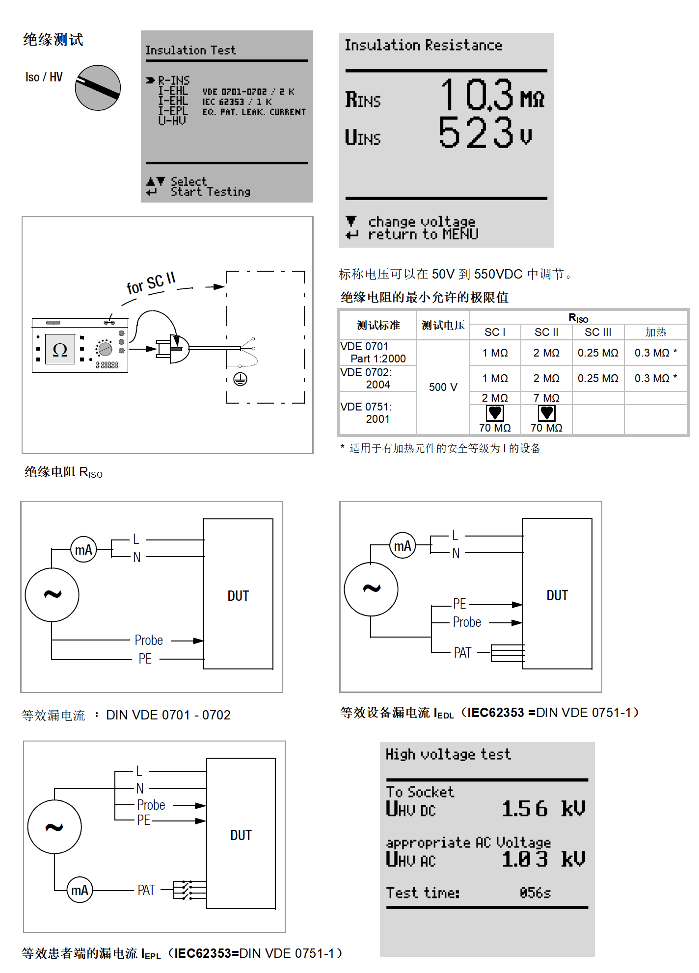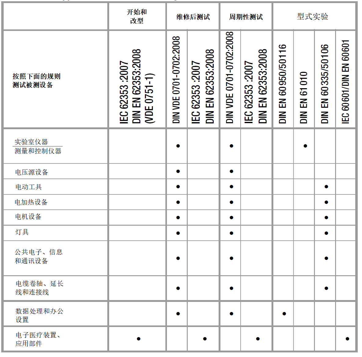 1.按照 DIN VDE 0701-0702, 2008-6 第六版對電氣儀器進行測量。
