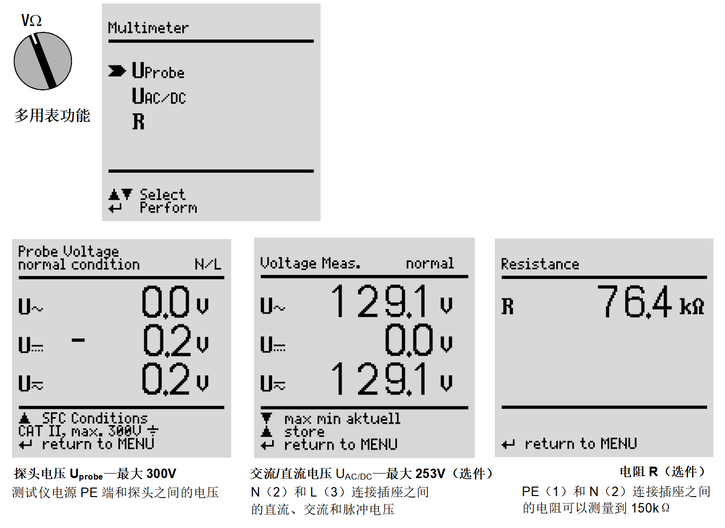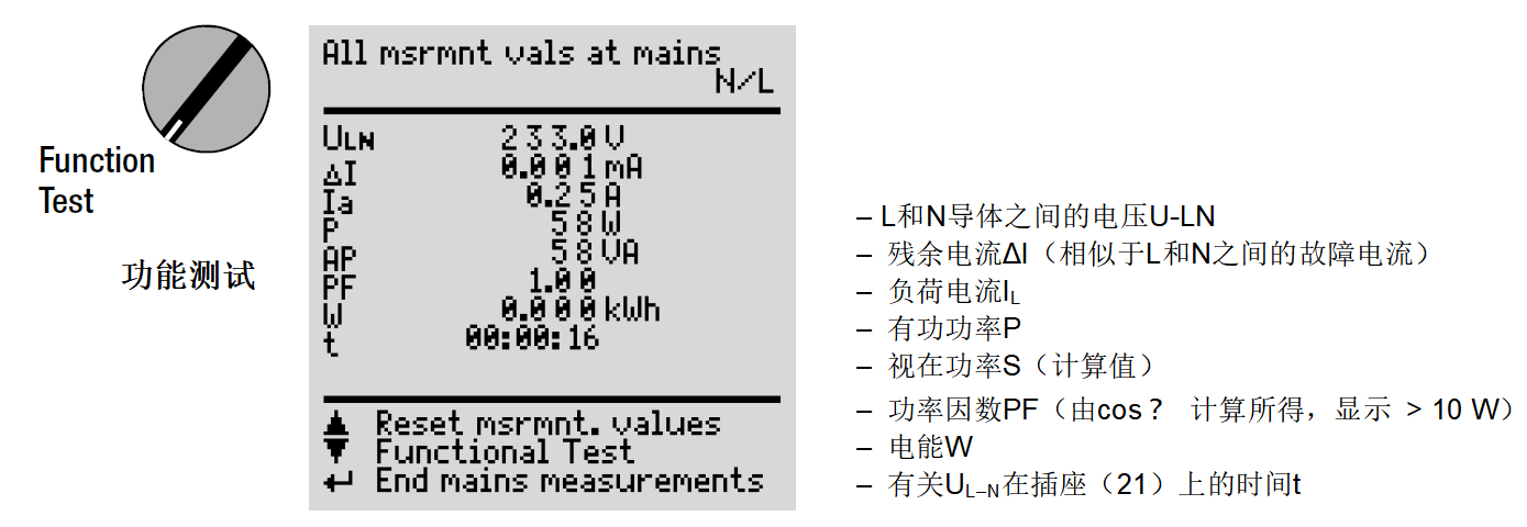 2.自動識別被測儀器的安全等級( I 或 II )(只適用于德國和法國的插座類型)和總線連接錯誤